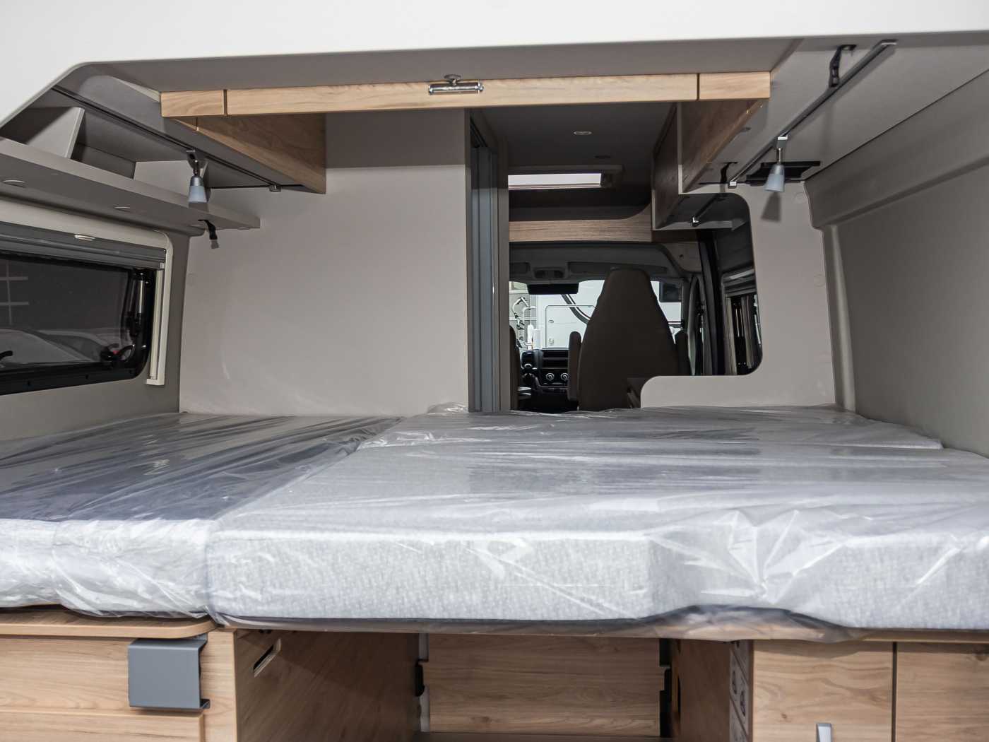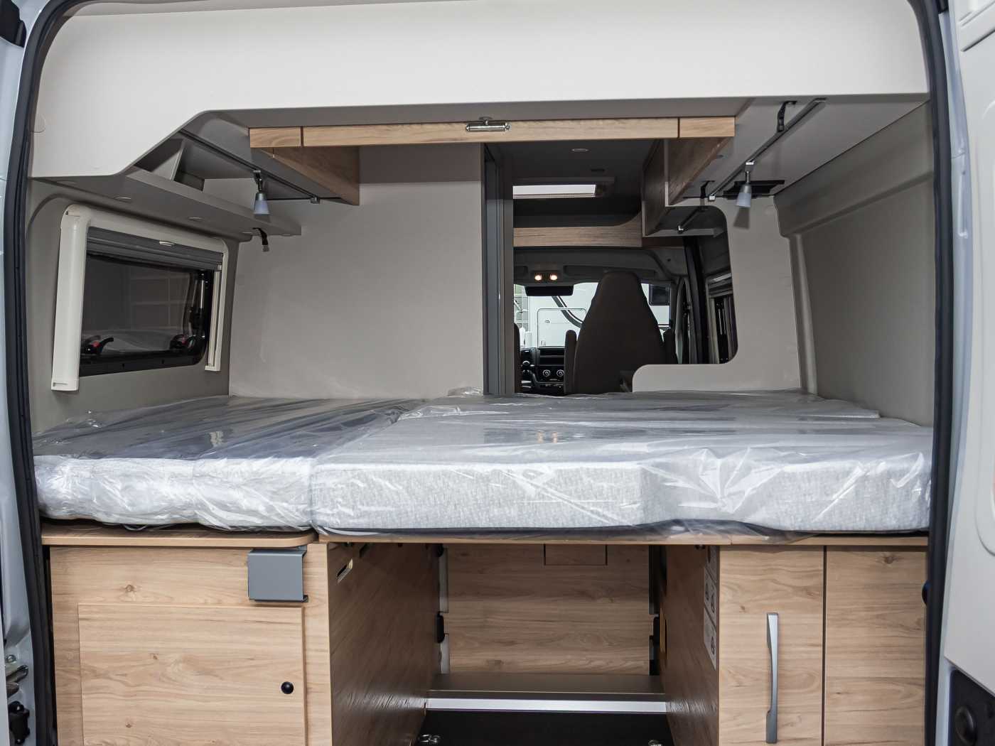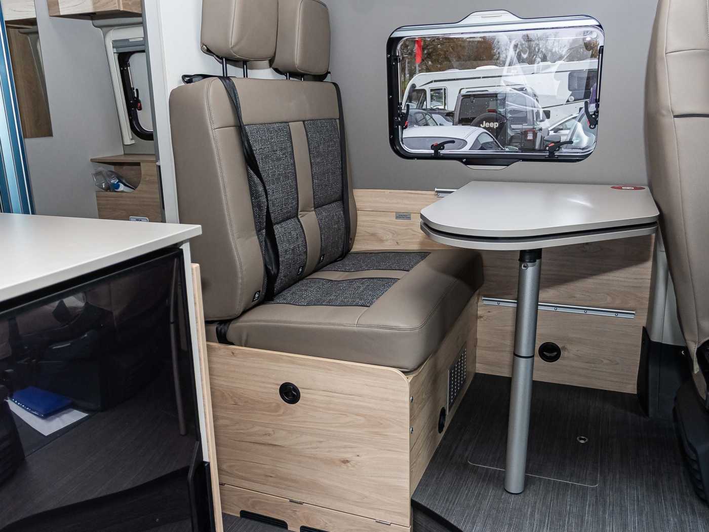 Komfort Paket (600 DK / DS / DR) (Fenster mit Fliegenschutz und Verdunklungsrollo im Heck links, Innovativer Auszug unter dem Heckbett, Drehplatte für Tischerweiterung)