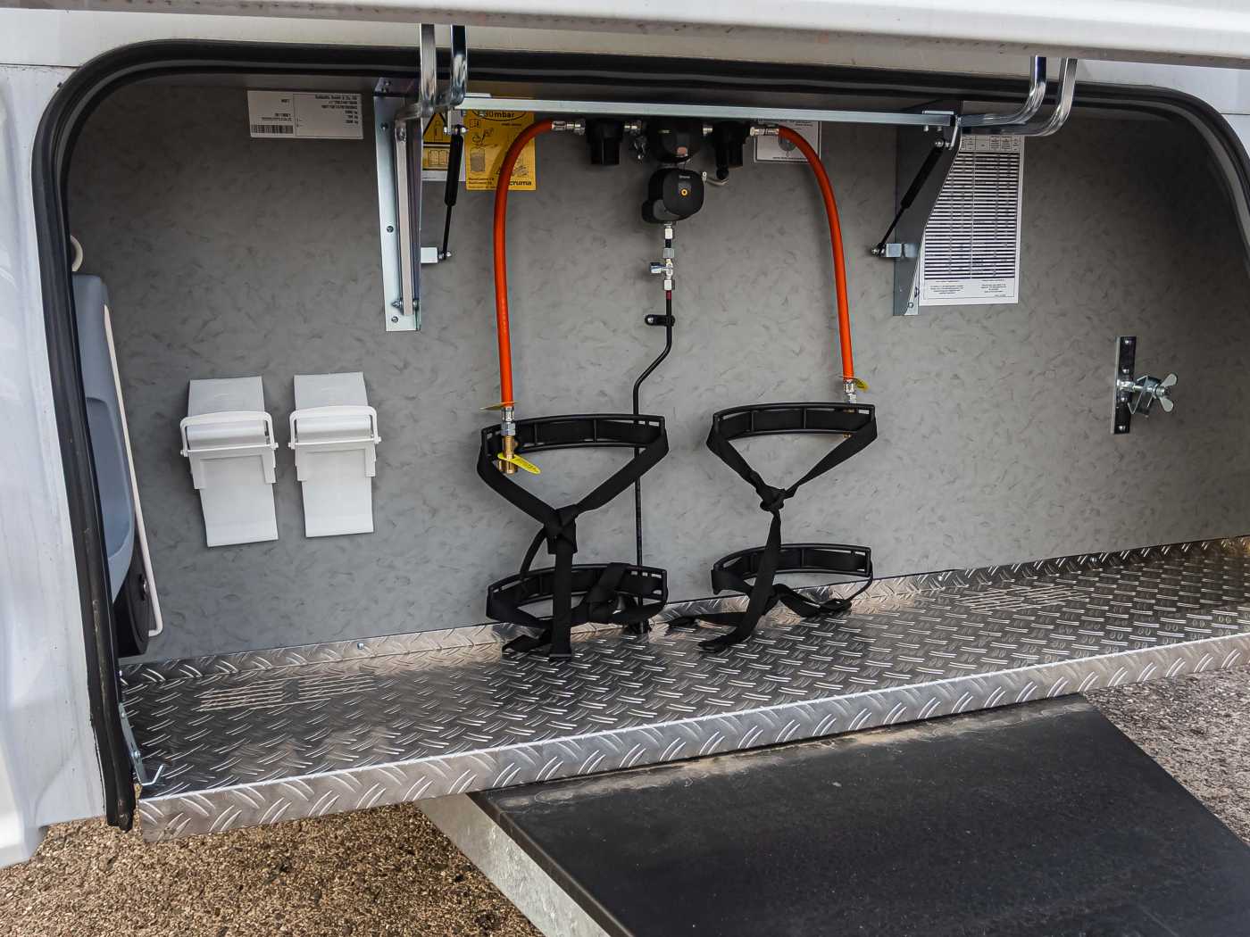 Vorbereitung für Flachbildschirm (Antennenkabel und TV-Halter)Automatische Gasflaschenumschaltung mit Crash Sensor und Gasreglerbeheizung EisEx