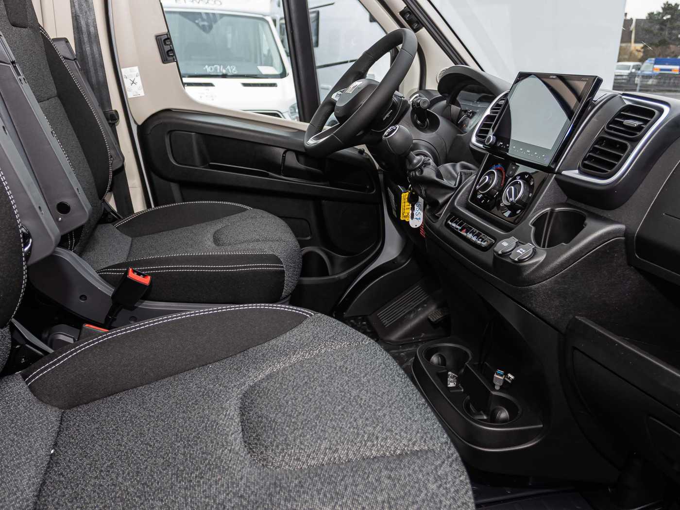 • Fiat Ducato 2,2 l Multi-Jet mit 103 kW | 140 PS, Abgasnorm EURO 6d • Frontantrieb • ABS (Antiblockiersystem), EBD (Elektronsiche Bremskraftverteilung), ESP (elektronisches Stabilitäts-Programm) • ESC (elektronische Stabilitätskontrolle) inkl. ASR (Antischlupfregelung) und Hillholder (Berganfahrassistent) • CWA (Seitenwindassistent), TSC (Anhängerstabilitätskontrolle) und PCB (Multikollisionsbremse) • Tempomat • Start & Stop Funktion • Scheibenbremsen, Hinter- und VorderachsStabilisator, Umluftheizung, Drehzahlmesser • Servolenkung, höhenverstellbare Scheinwerfer, Wegfahrsperre, 3-Punkt-Sicherheitsgurt mit Gurtwarner (für Pilotensitze) • Außenspiegel, elektrisch verstellbar und beheizbar • Elektrische Fensterheber und Zentralverriegelung im Fahrerhaus • Tagfahrlicht • Stahlfelgen 16” inkl. Radzierblenden • Fahrer- und Beifahrerairbag • Klimaanlage Fahrerhaus manuell • Bordcomputer inkl. Außentemperaturanzeige • Getränkehalter in der Mittelkonsole • USB-Steckdose (doppelt) • Pannen-Set Fix & Go Kit