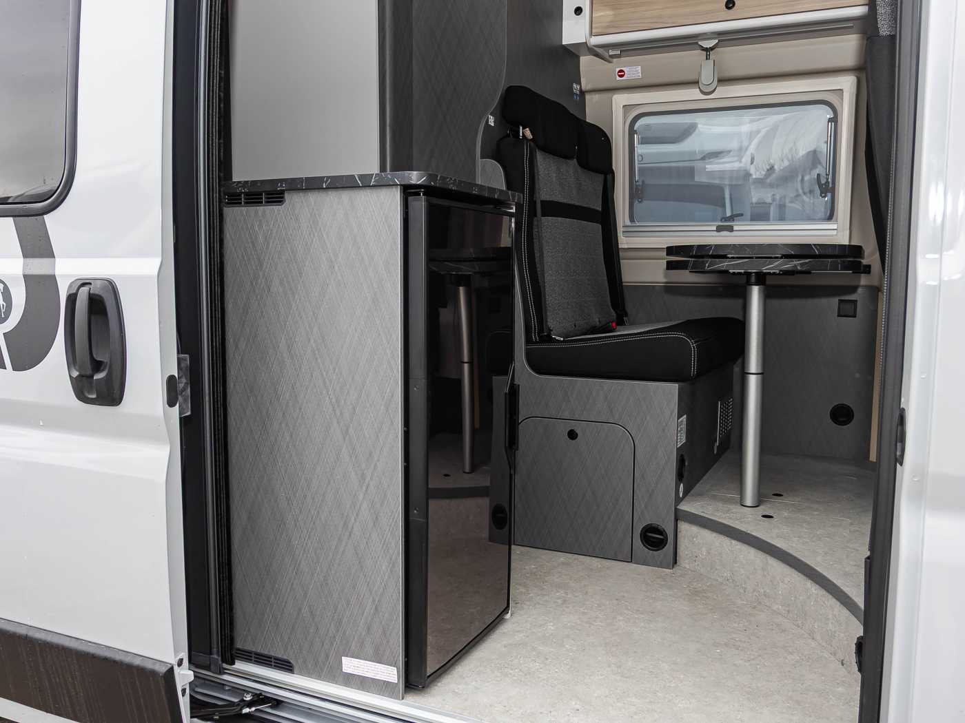 • Fahrer-|Beifahrersitz drehbar in Wohnraumstoff • Höhen- und Neigungsverstellung für Fahrer- und Beifahrersitz