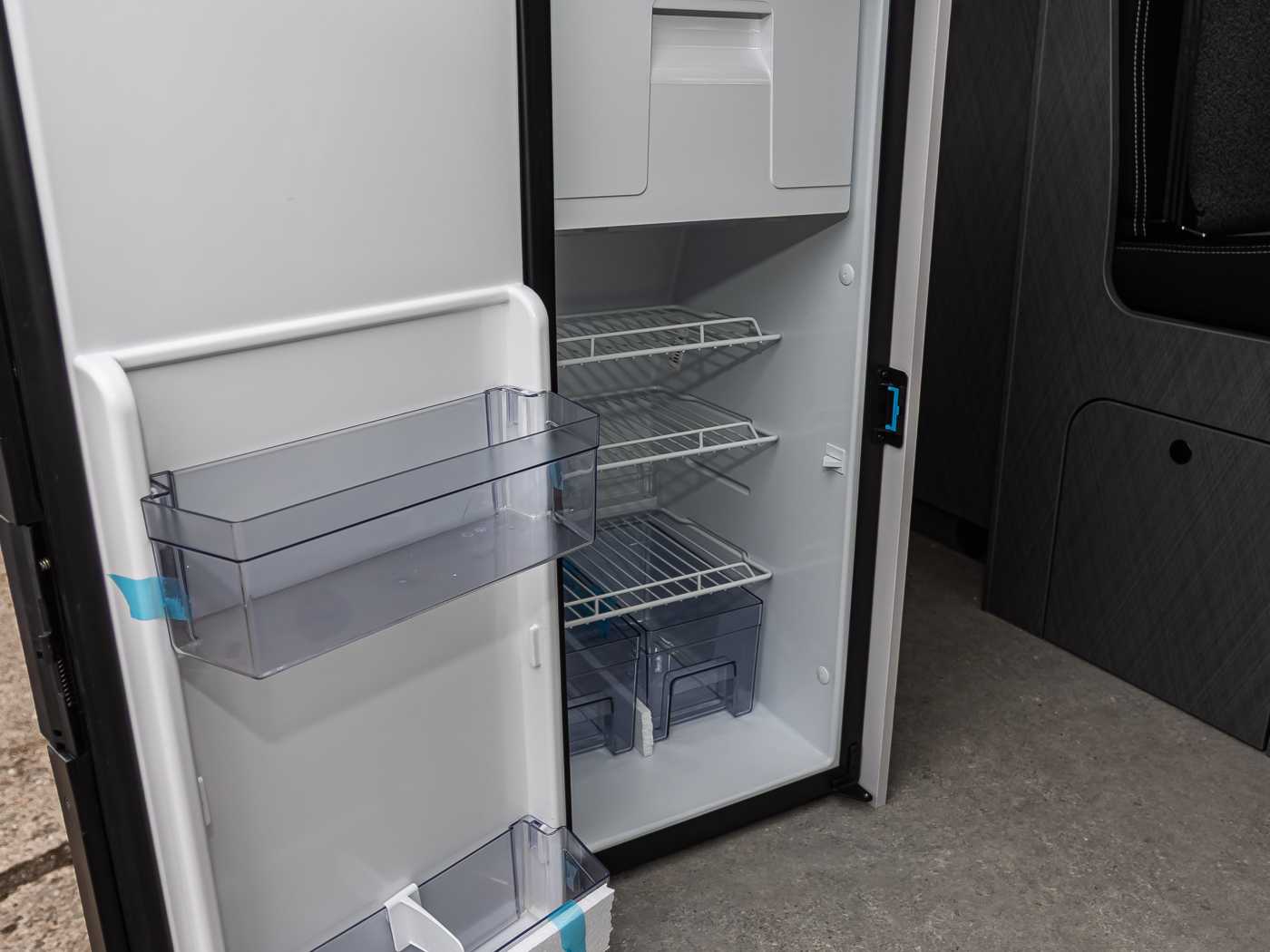 • Ergonomisch angeordnete Küche mit großzügiger Arbeitsfläche • Abstellfläche hinter Kocher • Geräumige Schubkästen mit Soft-Close im Küchenblock • 2-Flamm Gaskocher mit Piezozündung und geteilter Glasabdeckung • Kompressorkühlschrank 84 l mit 6 l Gefrierfach • Flex-Schienensystem mit 2 Haken (außer CV 540 DB) • Frischwassertankkapazität 100 l, Abwassertank 90 l