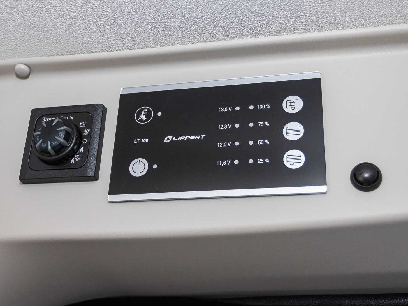 • Leistungsstarke, wartungsfreie Aufbaubatterie (95 Ah) • Elektrischer Ladeautomat für Aufbauund Fahrzeugbatterie 12 V | 18 A • Bord-Control-Panel • CEE-Außenanschluss für 230 V mit Sicherungsautomat • Beleuchtetes Dinettenpodest • Individuell verstellbare LED-Lesespots • Flexible Lichtleiste • Steckdosen 1 x 12 V, 3 x 230 V, 1 x Doppel USB