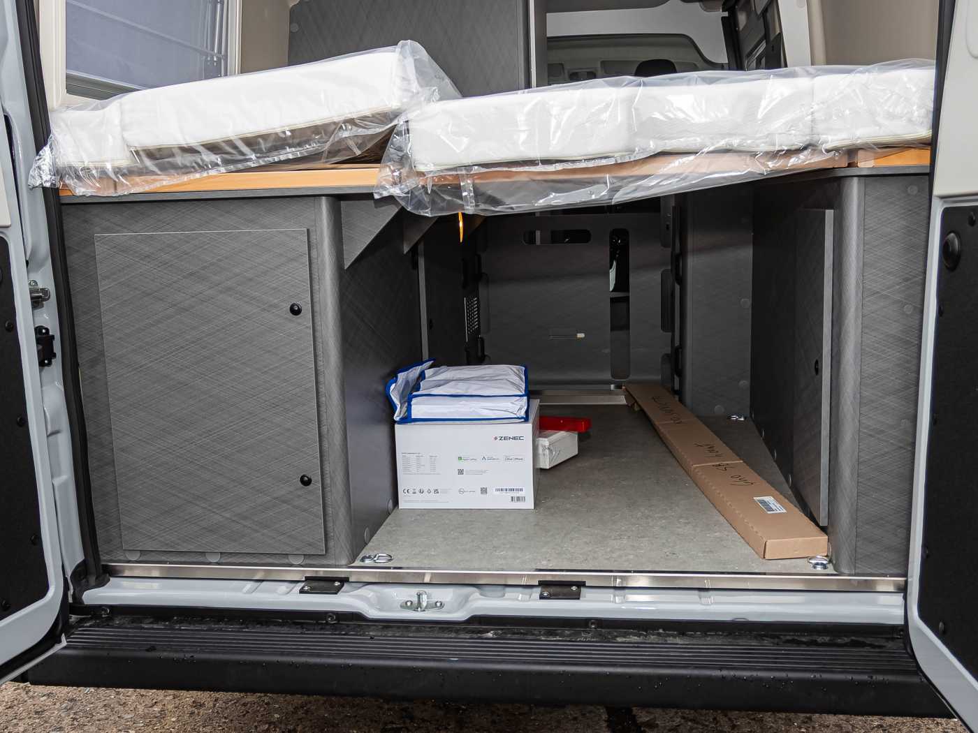 • Beide Hecktüren mit Ausstellfenster (inkl. Verdunklungsrollo) • Heckstauraum mit 4 integrierten Verzurrösen