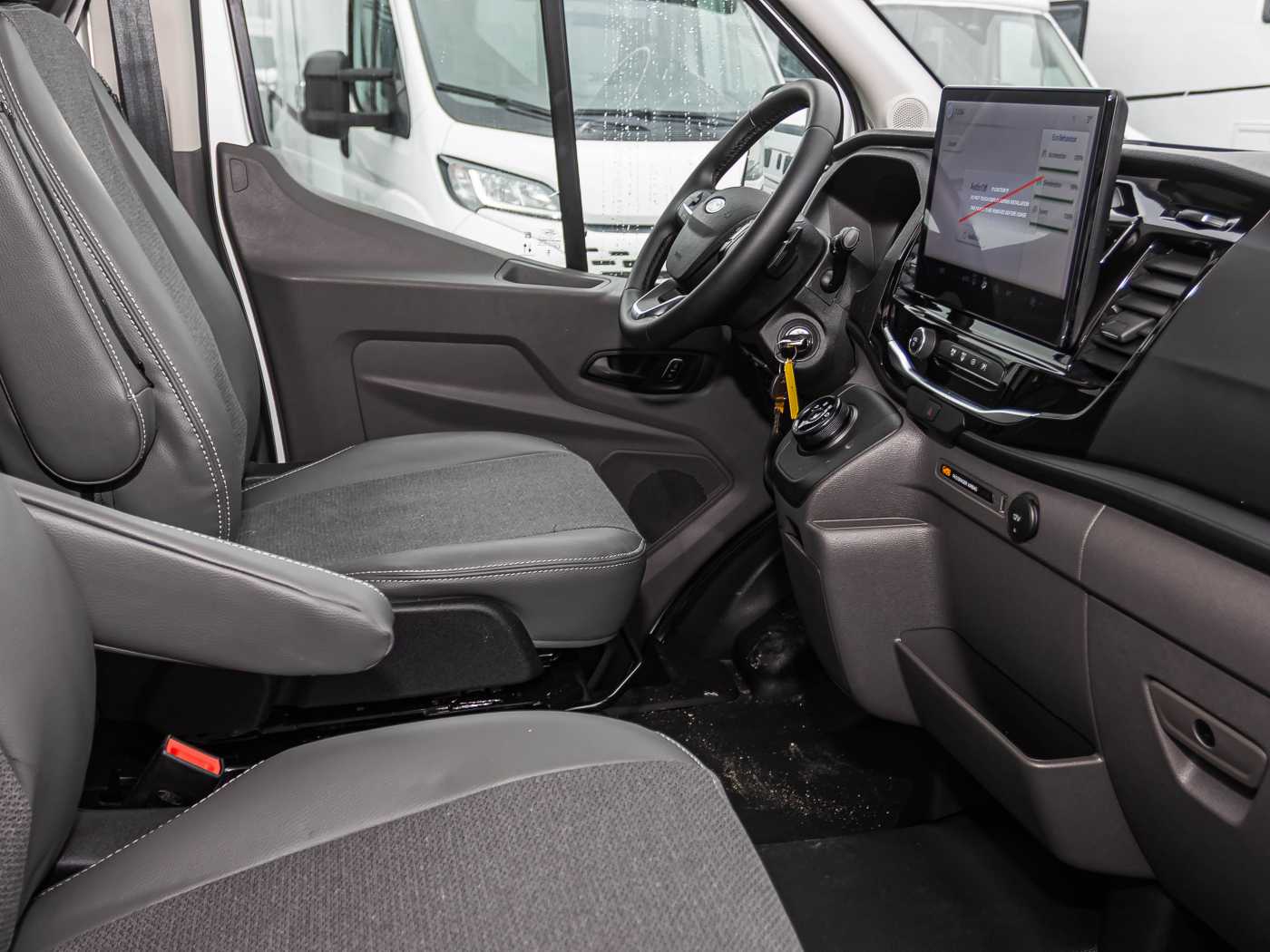 • Reifenreparaturset • Fahrer-|Beifahrersitz drehbar mit Doppelarmlehnen • Höhen- und Neigungsverstellung für Fahrerund Beifahrersitz • FORD Frozen White • Kraftstofftank 70 ltr