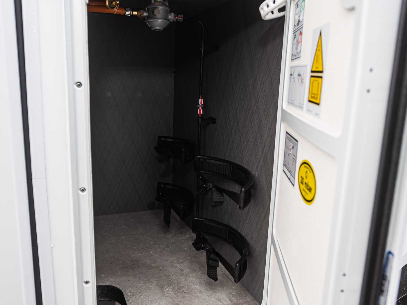 • Stauraum für 2 Gasflaschen mit max. 11 kg Füllgewicht • Combi 4 Gasheizung • Gasabsperrhähne gut zugänglich und zentral angeordnet